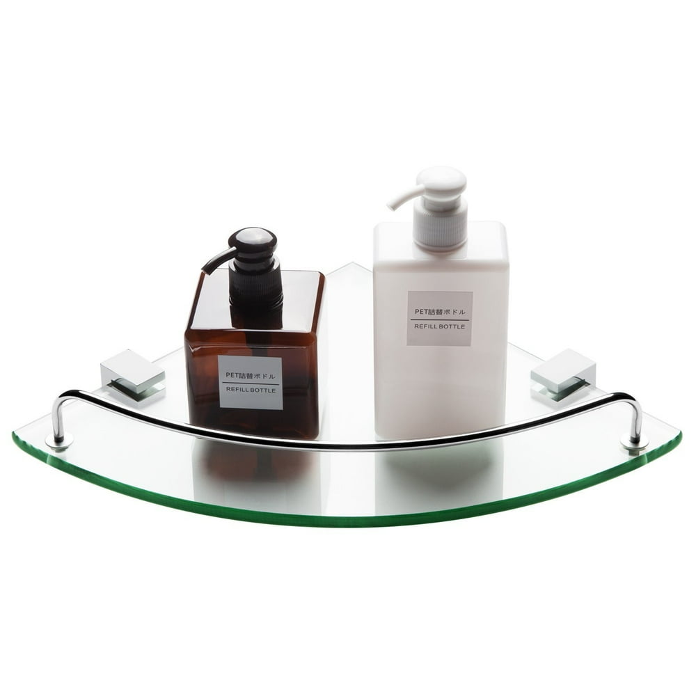 No matter the size of your bathroom, it's important to have a be sure to also keep your personal style in mind. Adding a bathroom shelf or shelves presents an opportunity to give the room an extra touch of style. The corner shelf is large enough to hold several large shampoo bottles. Do you assume corner glass shelf for bathroom seems great? Bluegate inc bathroom tempered glass curved corner shelf 10 x10 3 8 thick wall.