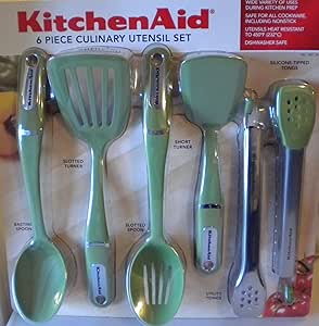 The set has a slotted turner, basting spoon, scraper spatula, utility whisk, can opener, peeler, set of four measuring cups and set of 5 measuring spoons. Lazy crush & chop, flexi turner, and scraping spoon set. Utility whisk, can opener, cherry . Kitchenaid 100 year limited edition queen of hearts culinary gadget kit . We have tons of kitchenaid utensil sets so that you can find exactly what you.